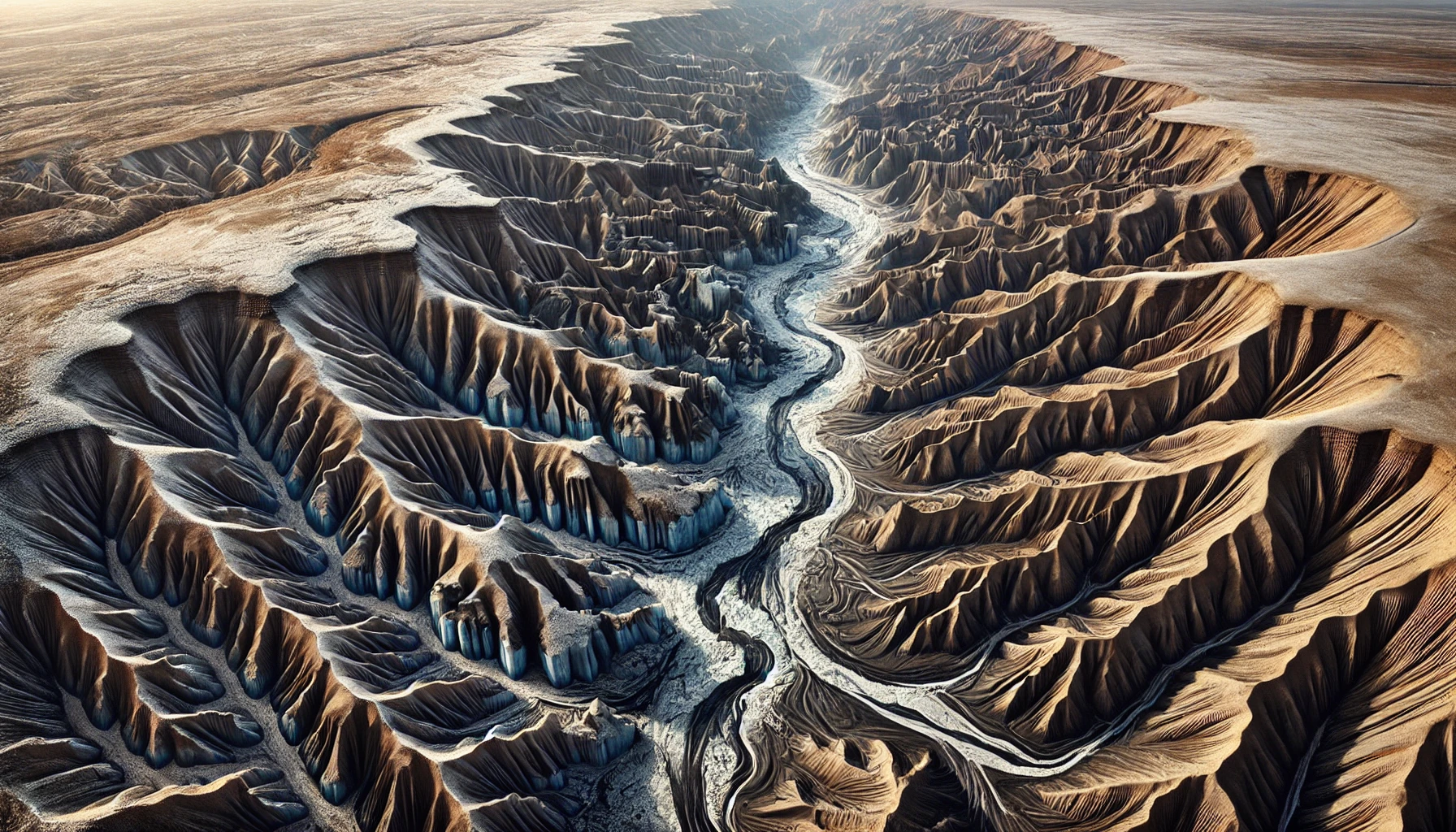 Led’Zemya is characterized by a turbulent mix of sharply carved ridges, deep sinkholes, and plunging ravines, a direct result of the ongoing clash between encroaching ice and desert heat. This region showcases a terrain that shifts unpredictably, with icy patches giving way to scorched earth within mere meters. The constant geological turmoil renders the area nearly impassable, creating a natural barrier that is as breathtaking as it is dangerous.