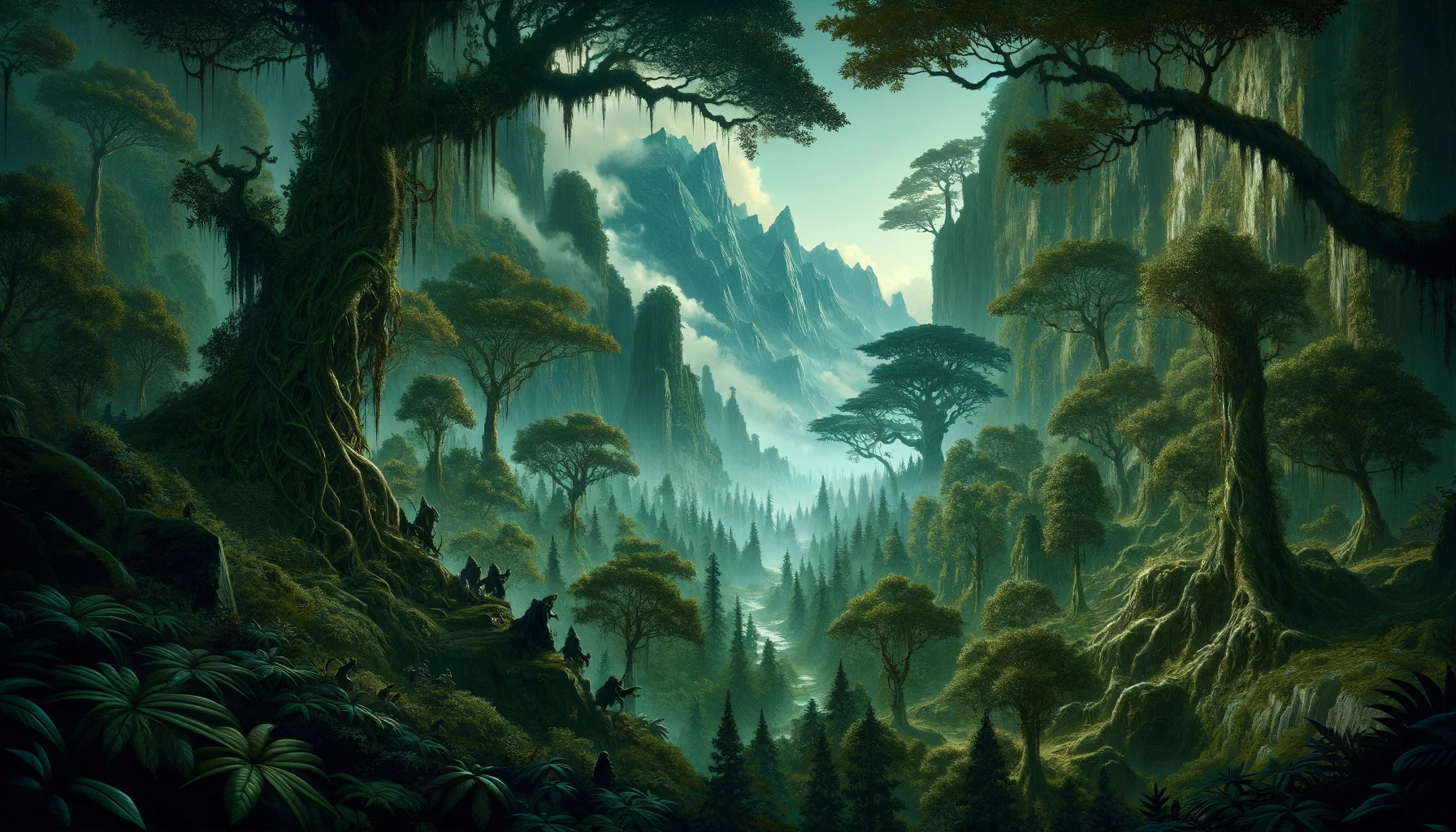Ridgeback Forest, named after the towering Ridgeback Mountain range it borders, is a vast forest characterized by its dense canopy and sprawling undergrowth. This thick foliage creates a natural labyrinth, casting the forest floor into perpetual twilight and preserving ancient conditions within its depths. The mountains contribute to the forest’s isolated and perilous nature, creating a microclimate that sustains its ancient ecosystems.
