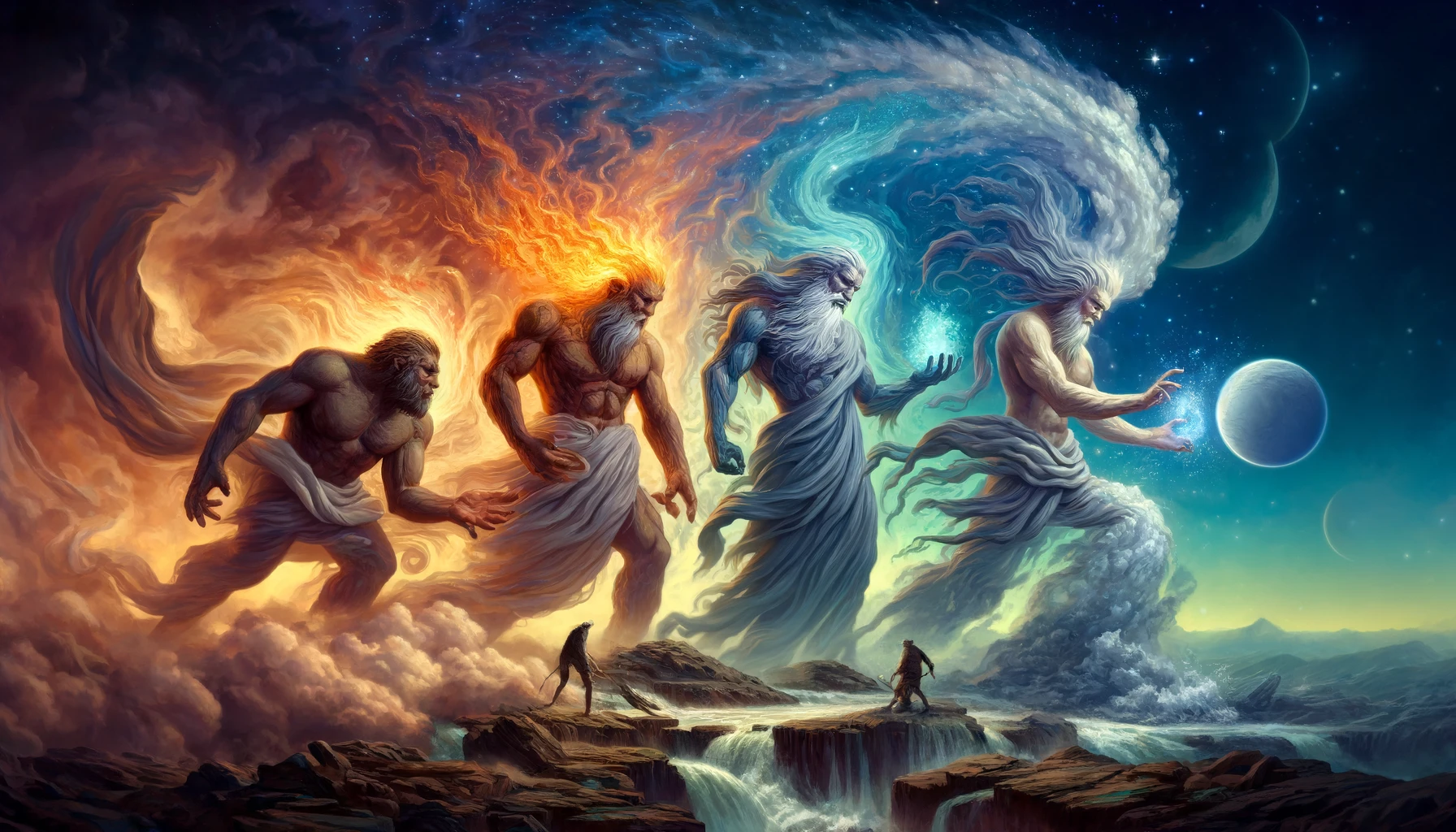 Similar to the New Gods, the Elemental Envoys like Poraal Oir of the storms and Rezza Oir of the trade winds are less commonly worshipped and are often specific to regions or cultures particularly affected by the elements they represent. Their followers typically include those who live in close harmony with nature or whose livelihoods depend on the elemental forces these envoys control. Additionally, practitioners of elemental magic hold these envoys in high regard, often invoking them in rituals and spells to harness their specific elemental powers. These magic users, whether they are scholars at arcane academies or solitary practitioners in remote locales, view the envoys as both patrons and sources of potent magical energies, integral to their craft. While the Elemental Envoys do not hold a prominent place in the broader religious landscape, they are crucial to those who seek to understand and manipulate the fundamental forces of nature through magic.