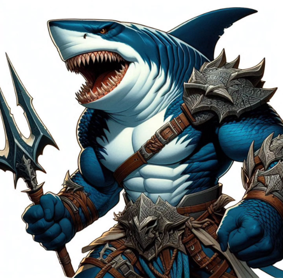 Description: Looming in the darker depths of the Coral Coast, the Selachians are the formidable enforcers of the Aquarian world. With their shark-like features, including sleek, powerful bodies and sharp, predatory gazes, they command both awe and apprehension among their Aquarian kin. The Selachians are renowned for their physical prowess and martial skills, making them natural guards, high-ranking military officers, and sought-after mercenaries.