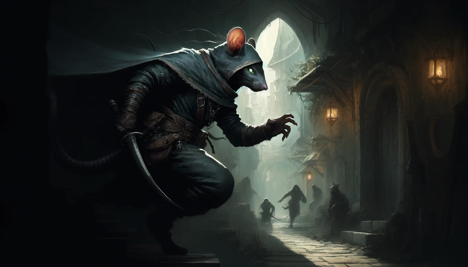Description: In the shadowed alleyways and dimly lit corners of Ratfolk society, there exists a breed of individuals known as the Shadow Scurriers, elusive and enigmatic figures who excel in the arts of stealth and subterfuge. Feared and reviled by other races, these shadowy operatives are the embodiment of clandestine prowess and cunning.