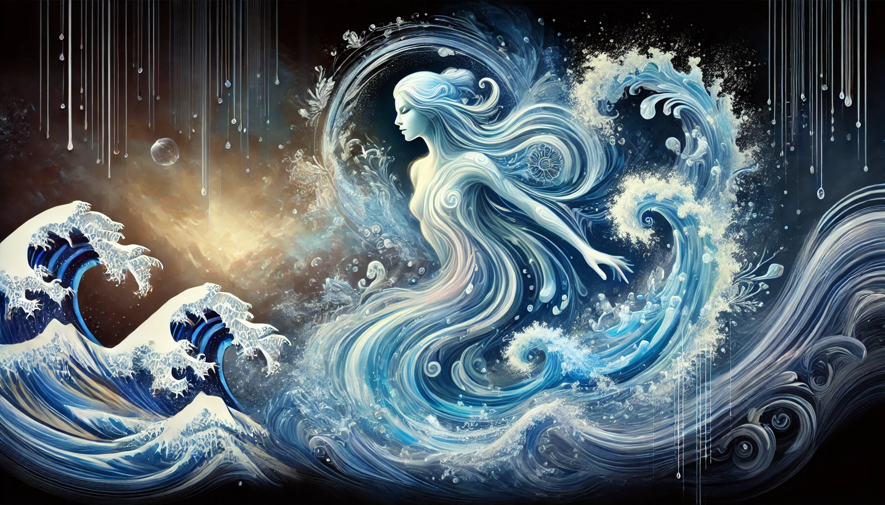Before the dawn of matter, before the concept of water had even been conceived, Ooscie existed as an elemental force of incomprehensible power. She was the embodiment of movement and change, the rising and falling, the ceaseless currents that flow through the fabric of time itself. Unlike her siblings, Ooscie’s nature was ever forward, driven and relentless, a force that propels and pulls the universe towards its destiny.