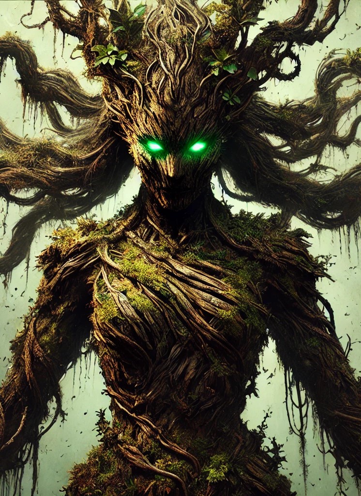 - Distinguishing Features: Her bark-like skin, and her hair made of flowing vines.