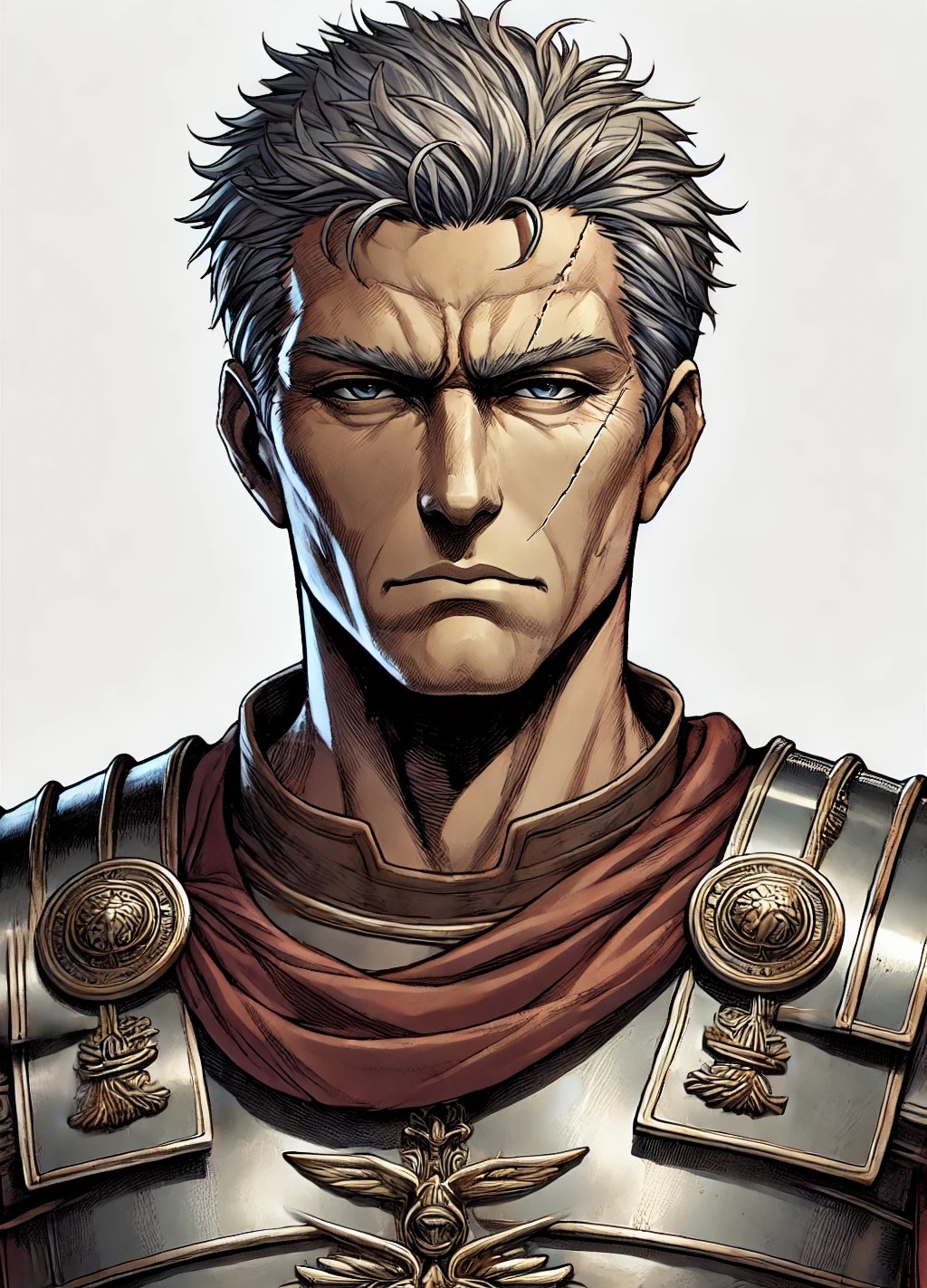 - Distinguishing Features: A prominent scar runs across his left cheek, a souvenir from a pivotal battle; he wears a set of highly decorated armour and helmet that serves as both protection and a symbol of his rank.