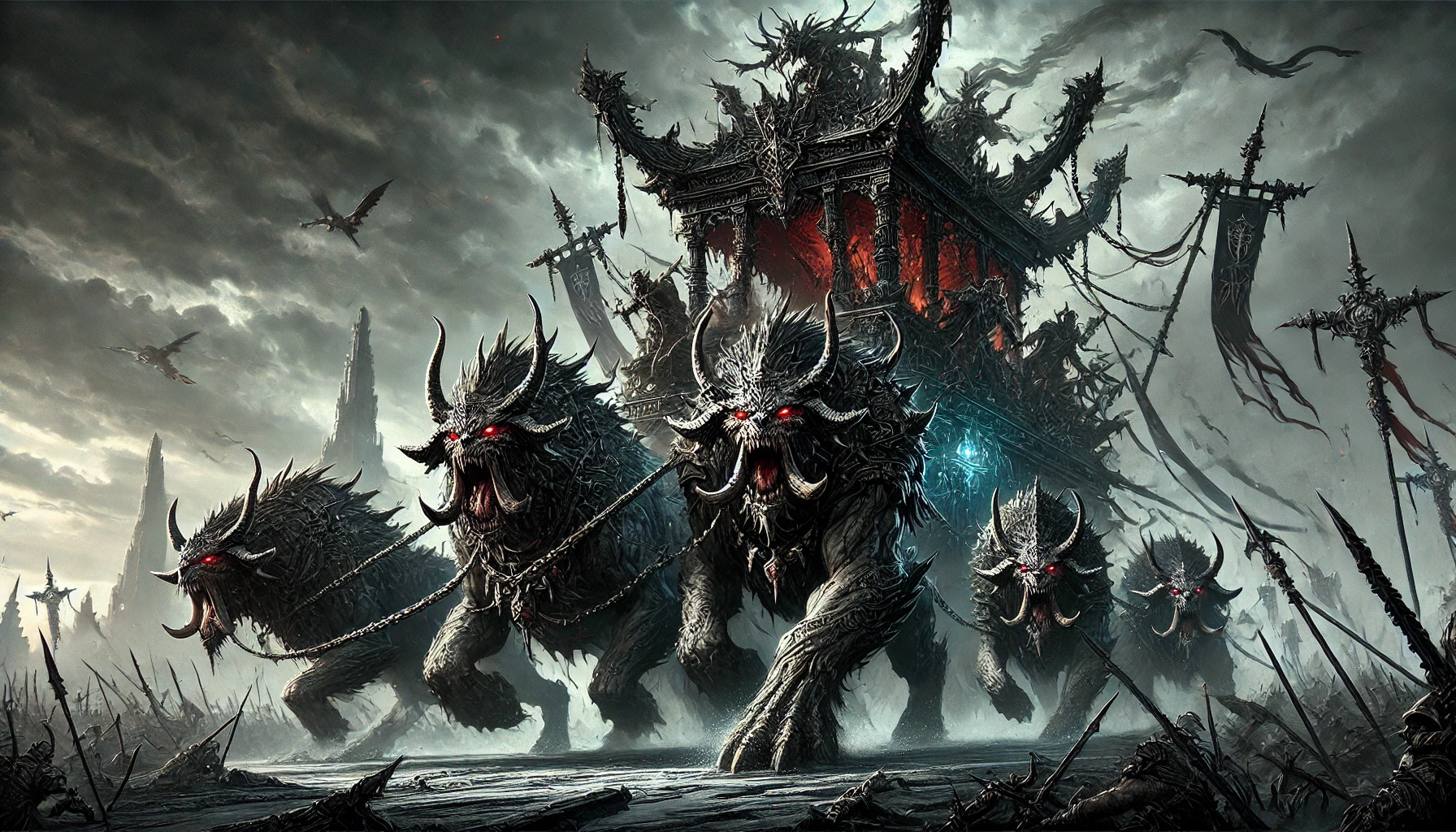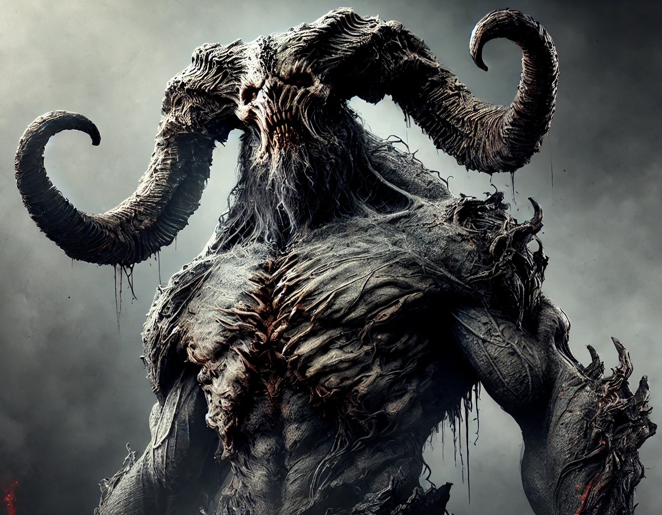 - Appearance: Ormos embodies the terrifying force of unbridled rage, manifested in a bestial form. His towering figure is more akin to a monstrous creature than a man, with thick, sinewy limbs covered in coarse, blackened fur. His skin, visible beneath the fur, appears cracked and ashen. His head is crowned with a set of twisted, ram-like horns, and his mouth is filled with sharp, jagged teeth, dripping with the anticipation of violence.