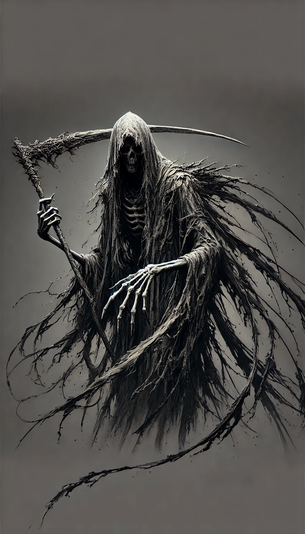 - Distinguishing Features: He large scythe, and shrouded face hidden beneath his black hood.